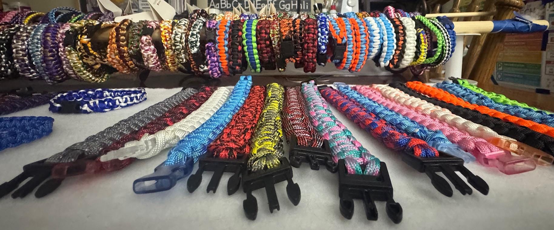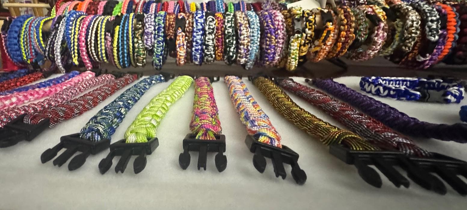 Items are made with #75 paracord and silk trim. These items are customized to your colors and size. Team Colors, Group colors, all to show your spirit.
